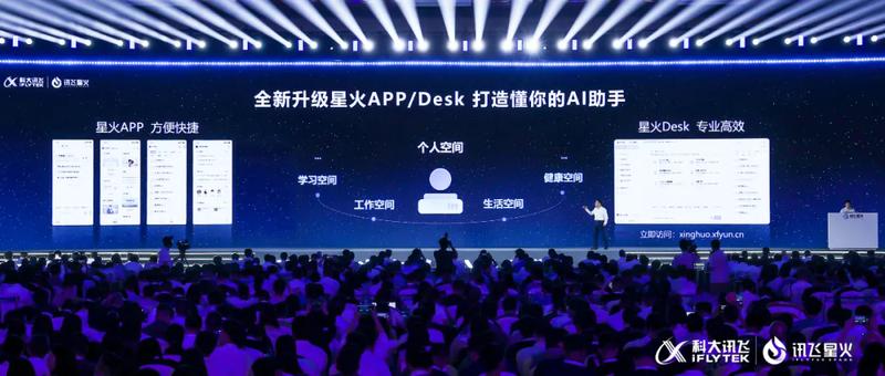 大模型个性化时代到来!讯飞星火APP/Desk全新升级,发布“个人空间”,打造更懂你的AI助手;面向专业领域的个性化应用,科大讯飞升级讯飞晓医APP,上线个人数字健康空间,打造每个人的健康助手;业界首发星火智能批阅机,“AI助教”助力老师减负增效、因材施教;讯飞AI学习机升级1对1答疑辅导功能,打造每个孩子的AI学习助手。